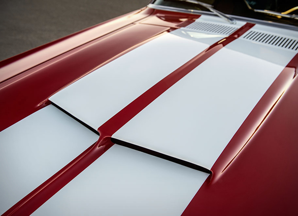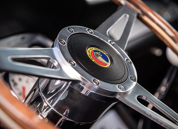 Todo en y debajo del coche es fabricado en casa y construido desde cero, con edificios dedicados a la fabricación de metal, carrocería, pintura y ensamblaje. Este ejemplo prístino ofrece la gran estética de la buscada GT500 de 1967 con las comodidades modernas como un motor V8 de 7 litros y 545 CV, una transmisión manual Tremec de 5 velocidades, suspensión en espiral, frenos Baer, radiador Be Cool de aluminio de flujo cruzado, dirección de cremallera y piñón, y llantas Shelby 427 con neumáticos Nitto.